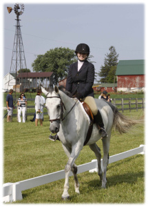 If you are a spectator come and enjoy a sunny day in the country, ambling about our generous grounds as the horses and riders glide gracefully through their under saddle classes in our groomed grass arena, leap happily around the jump course in the ring, or courageously navigate our hunt course of natural obstacles sprinkled throughout the property.