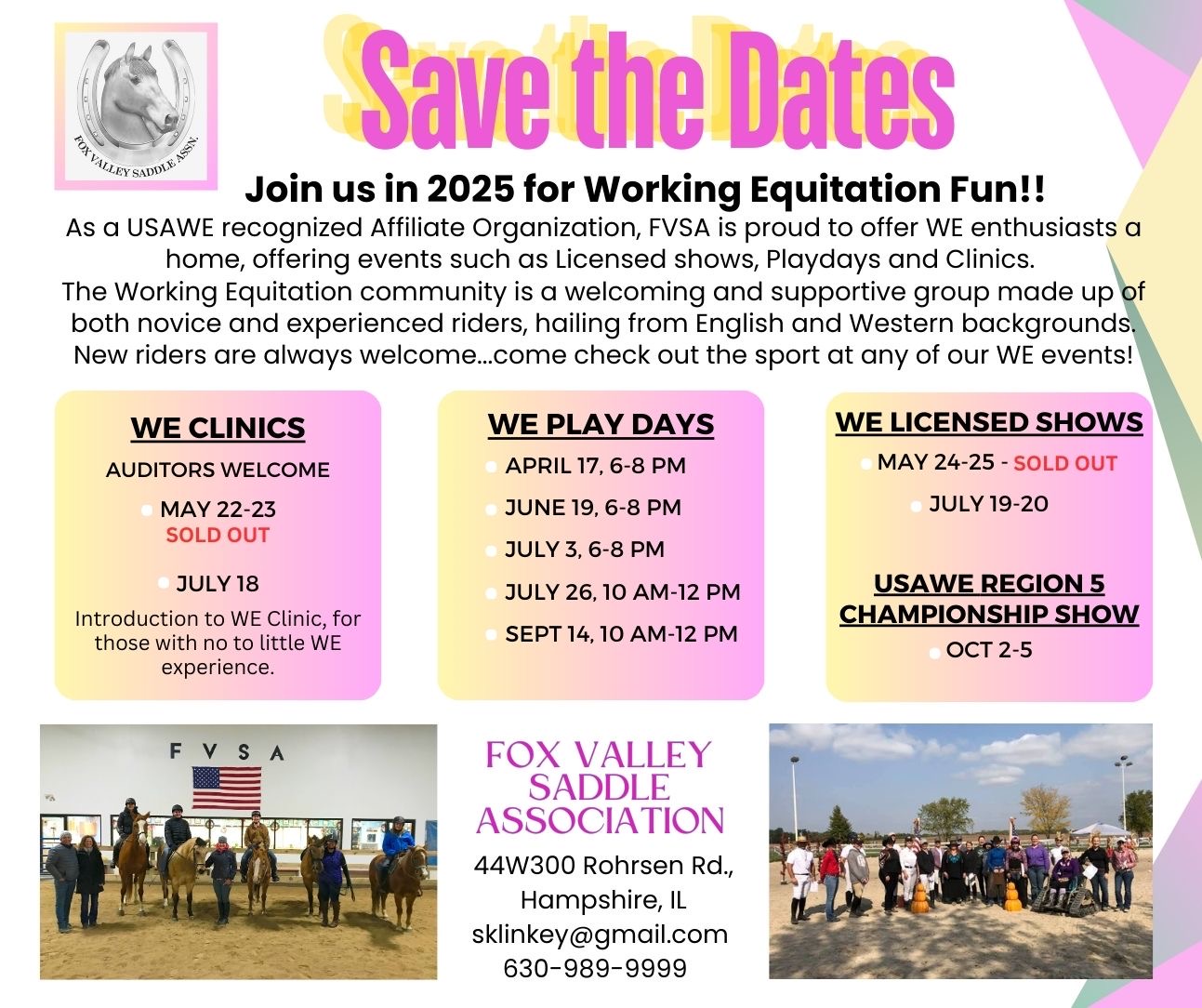 2025 Working Equitation Events at FVSAFox Valley Saddle Association offers a lot of activities and dates for 2025 Working Equitation |